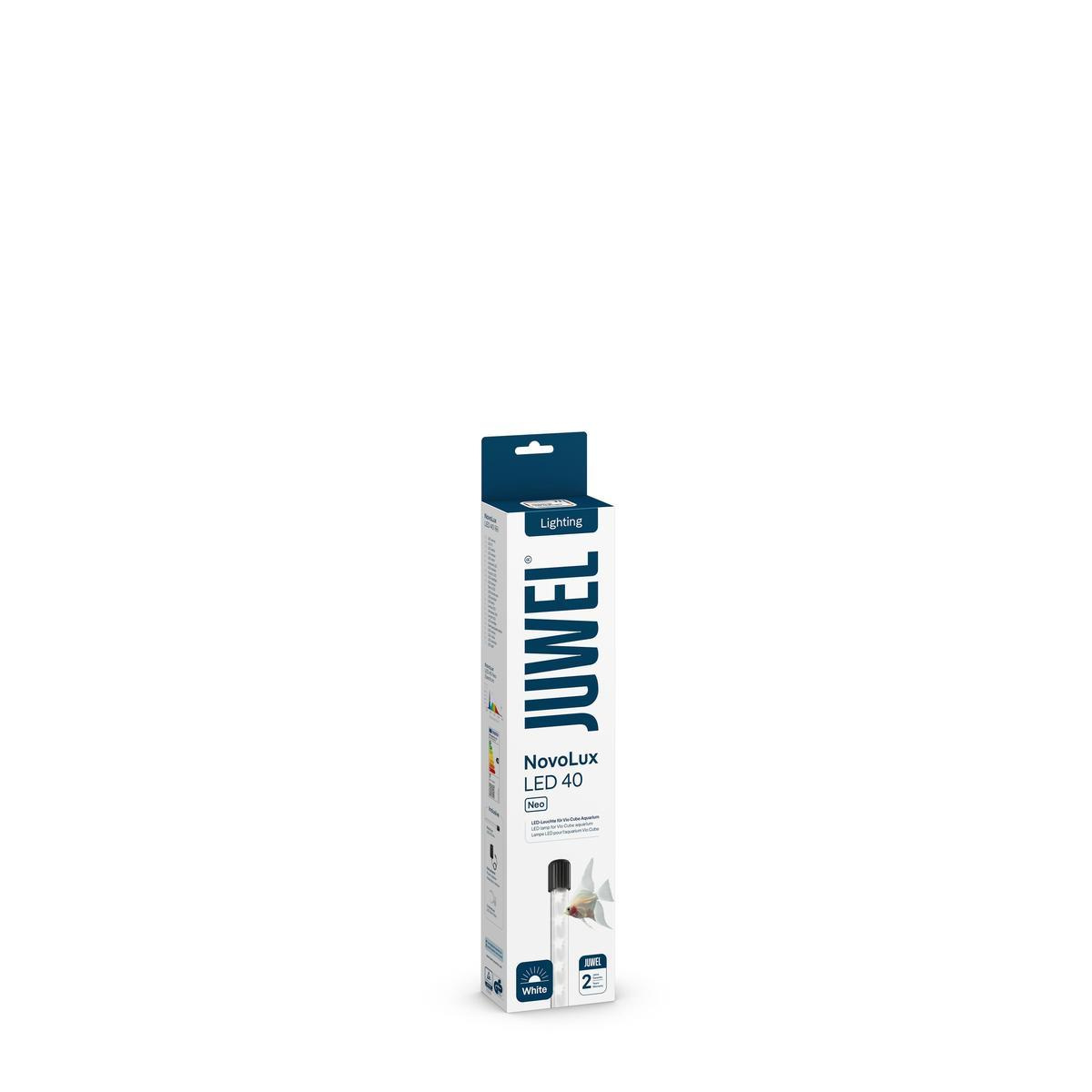Juwel NovoLux LED Neo, to wodoodporne i energooszczędne (jedyne 7W) oświetlenie LED dla Twojego akwarium, dające jasne dzienne światło. Proste w obsłudze, z dwoma klipsami oraz zasilaczem w komplecie. Moduł Juwel NovoLux LED 40 Neo jest standardowym oświetleniem w zestawach Juwel Vio Cube 54.